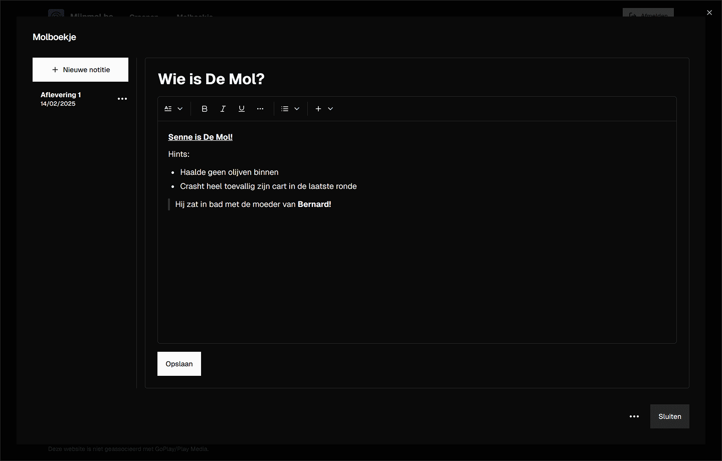 Speel elke week mee, stem op je hoofdverdachte, verdien punten en klim naar de top. Schrijf je theorieën neer in je eigen molboekje en bewijs dat jij de beste speurder bent in je vriendengroep.